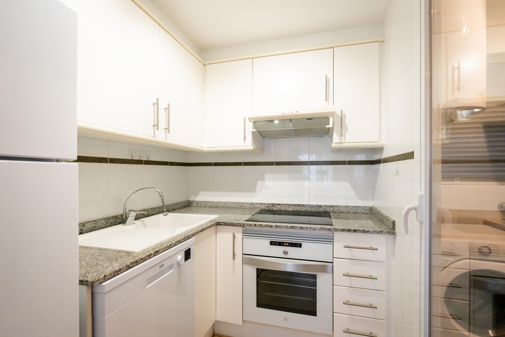 El apartamento de vacaciones tiene 2 dormitorios y 1 cuarto de baño. El alojamiento ofrece un jardín con césped, un jardín comunitario con césped, unas maravillosas vistas a la bahía y al mar y unas bonitas vistas a la piscina, al jardín y a otros edificios. La cercanía de la playa, sitios para salir, actividades deportivas, zonas de entretenimiento y lugares para ir de compras hace de este apartamento un alojamiento apropiado para pasar sus vacaciones en España con familia o amigos.