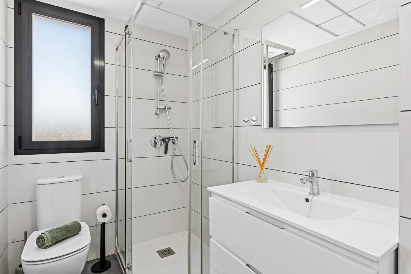 El apartamento cuenta con 2 dormitorios y 2 baños. La vivienda ofrece privacidad, un hermoso jardín con césped y árboles, un jardín comunitario con césped y árboles, y vistas maravillosas del valle, las montañas, la ciudad y la calle. Su confort y la cercanía a áreas comerciales, actividades deportivas y lugares de entretenimiento hacen de este un excelente apartamento para pasar sus vacaciones en España con familia o amigos.